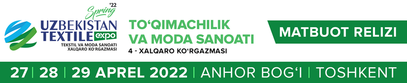 O'zbekistonlik to'qimachilik va tikuvchilik sanoatchilarining barcha kuchli tomonlarini namoyish etish imkonini beradigan eng muhim va eng kutilgan ko'rgazma tadbiri, "UzTextile Expo Bahor'22" to'qimachilik va moda sanoatining navbatdagi 4-Xalqaro ko'rgazmasi Toshkentda 2022-yil 27-29-aprel kunlari Anhor bog'ida bo'lib o'tadi, uning ishtirokchilari Markaziy Osiyodagi hamkorlar bilan hamkorlikning keyingi istiqbollarini muhokama qilish imkoniyatiga ega bo’ladilar.